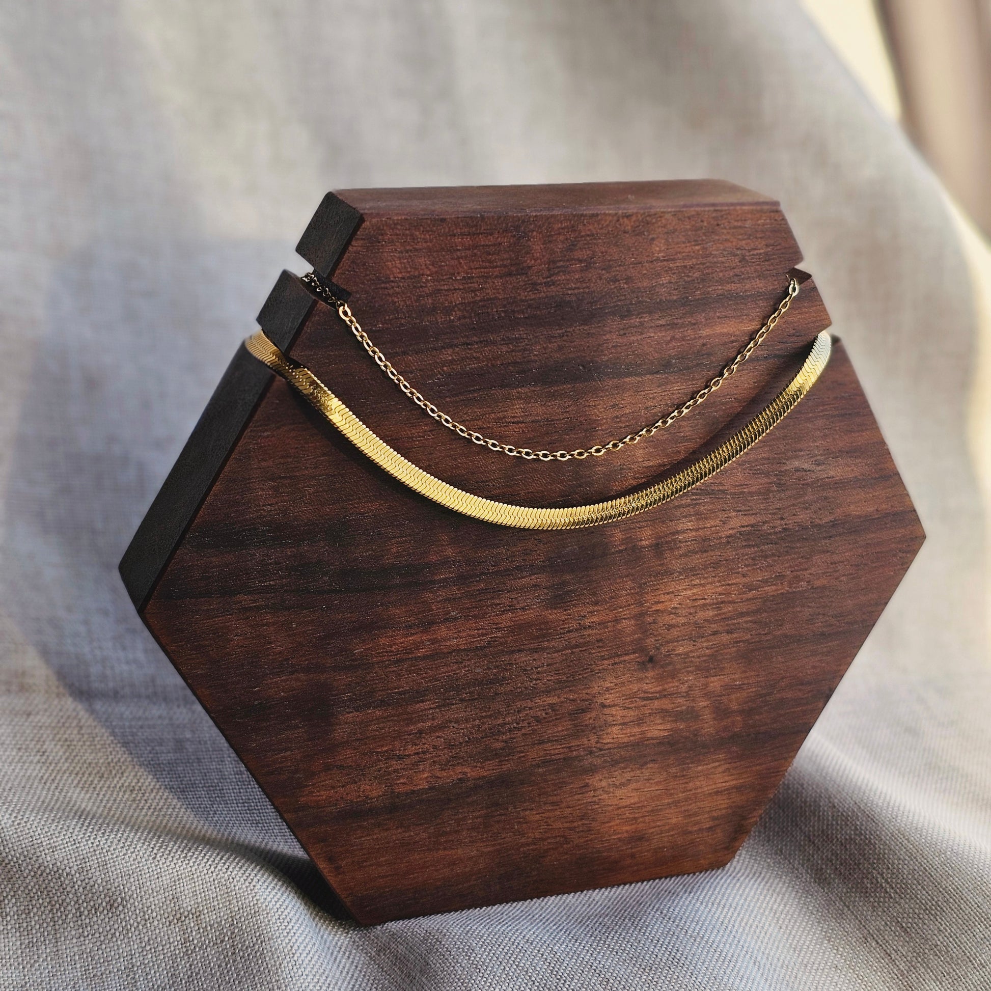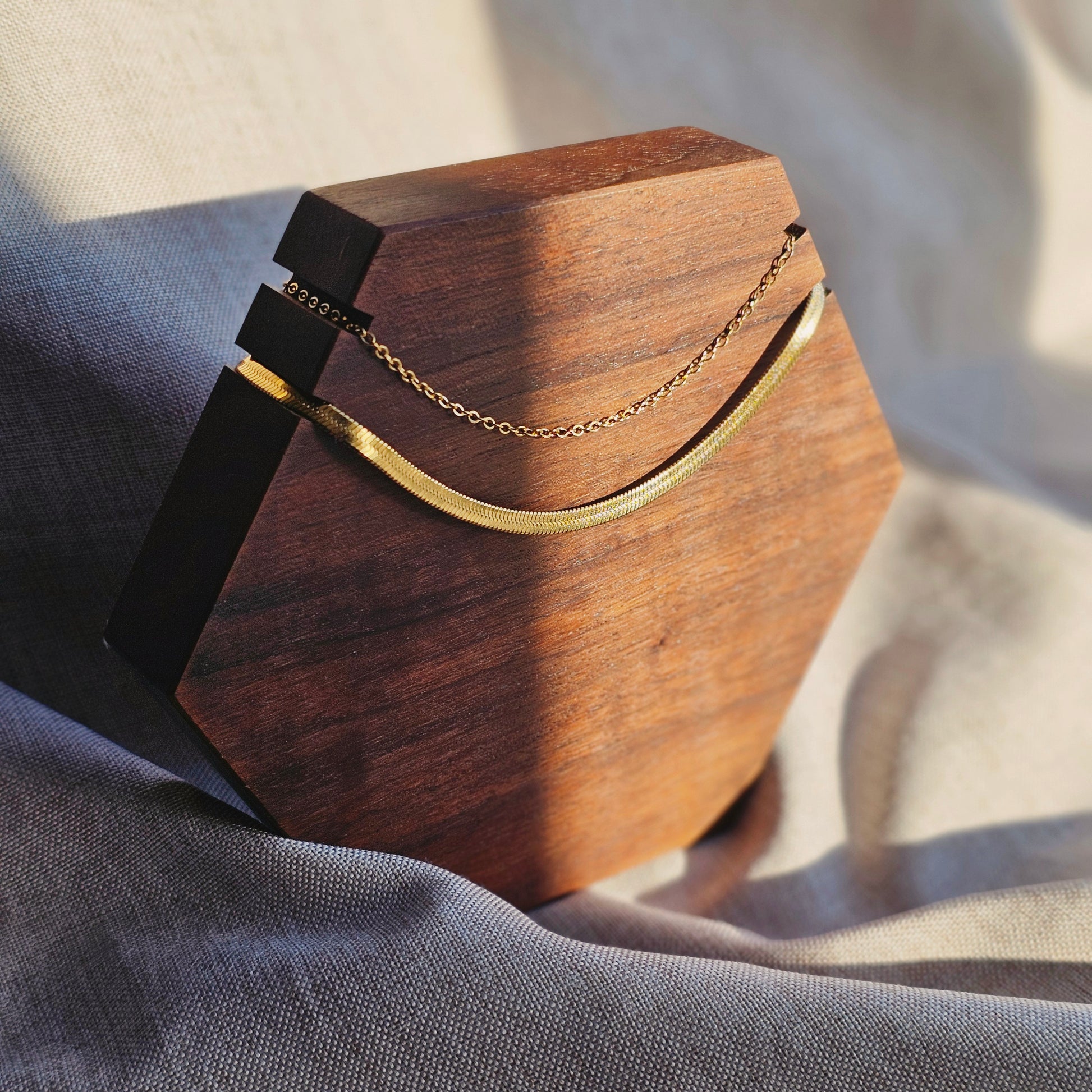A chic duo of 18K gold-plated stainless steel anklets—one sleek herringbone chain and one delicate dainty chain.